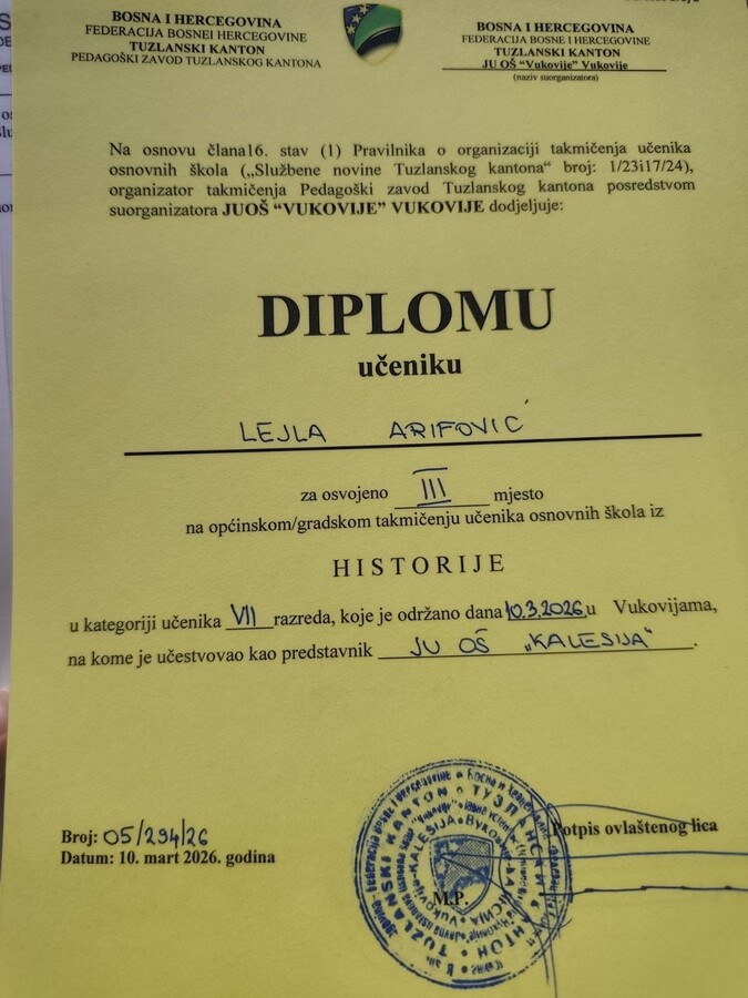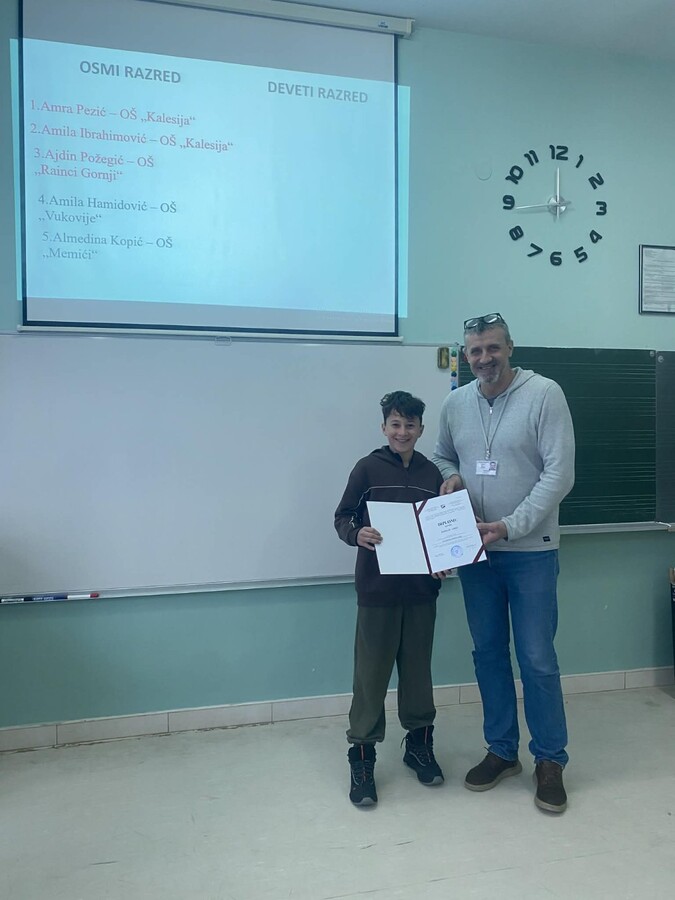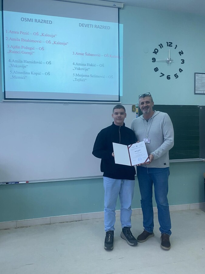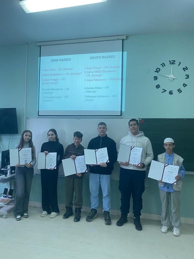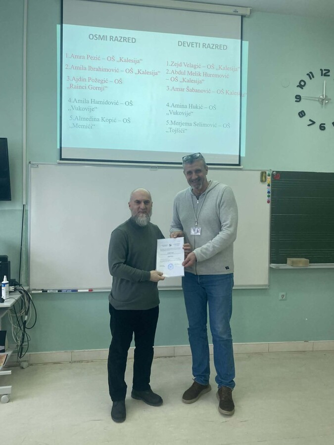 Čestitamo učenicima i njihovim mentorima, Mehmedaliji Imamoviću i Hamdiji Bajriću i iz OŠ „Kalesija“ i Štulanović Imamović Merjem iz OŠ „Rainci Gornji“!