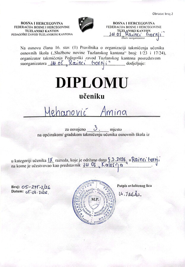 3. Mešić Amila – OŠ Rainci Gornji