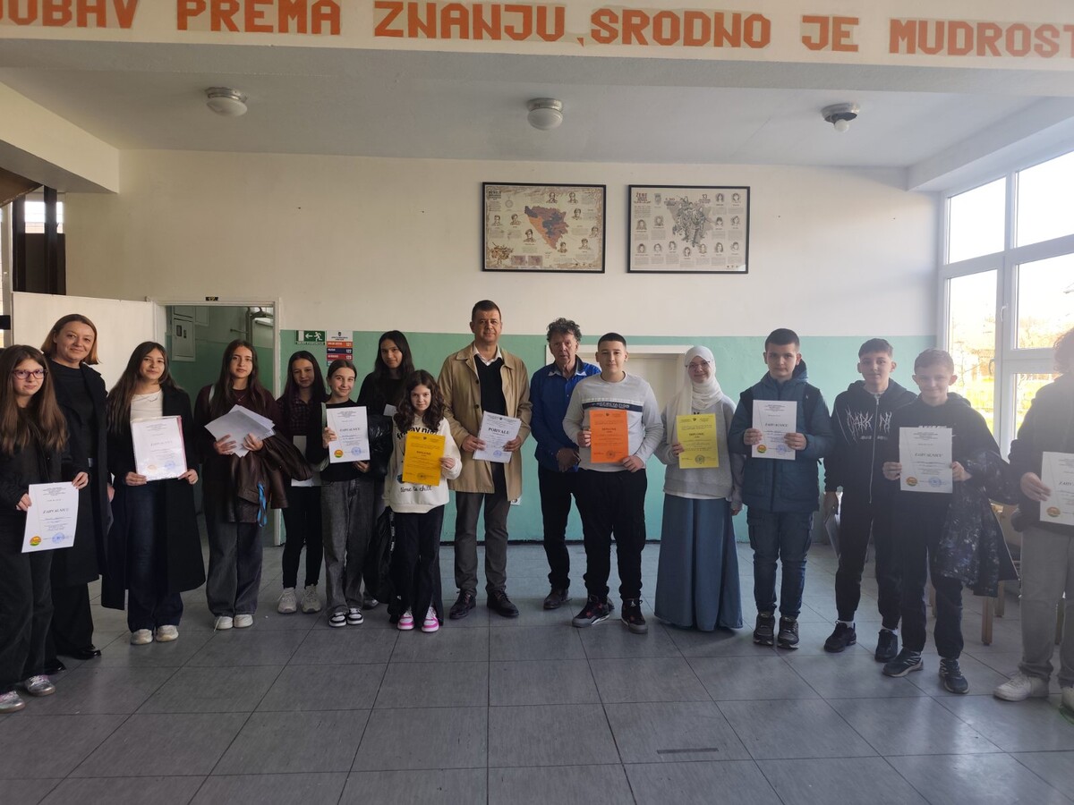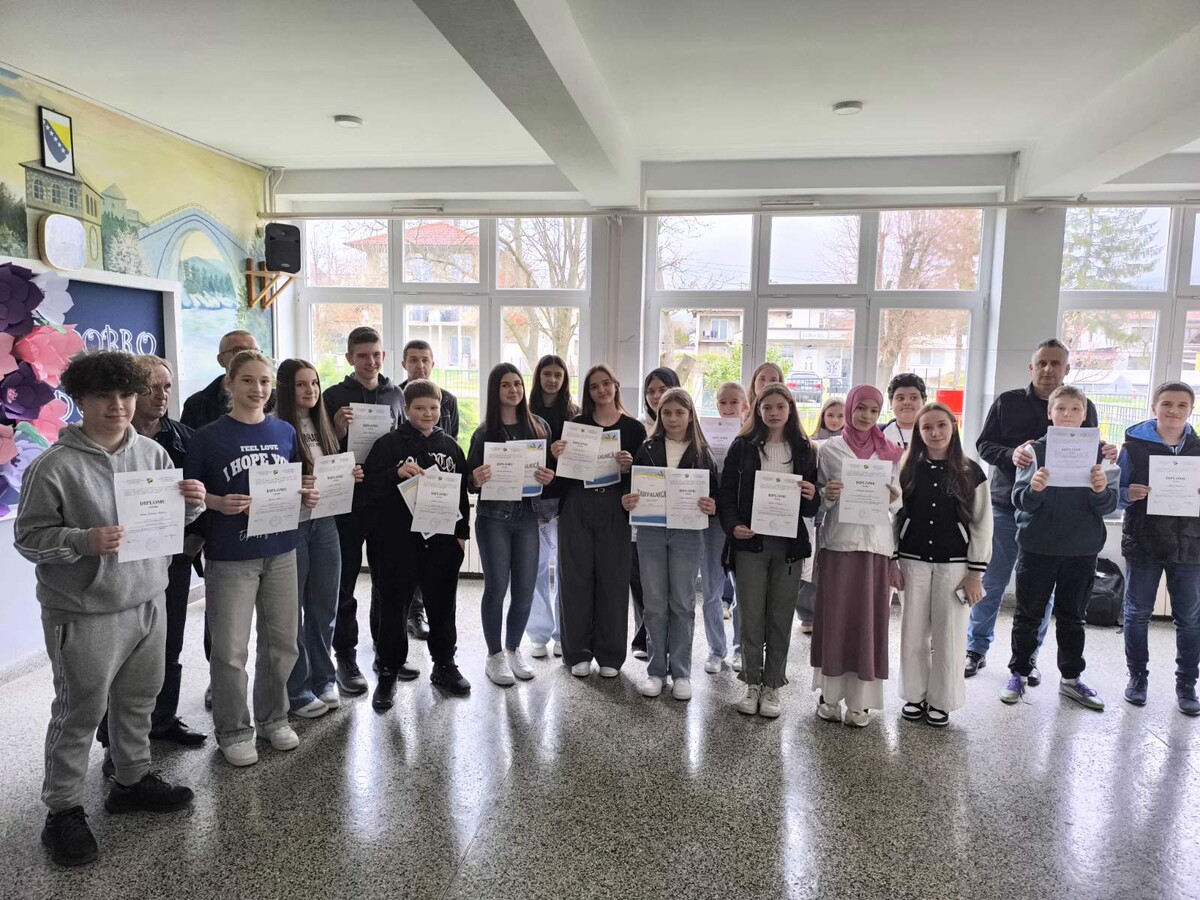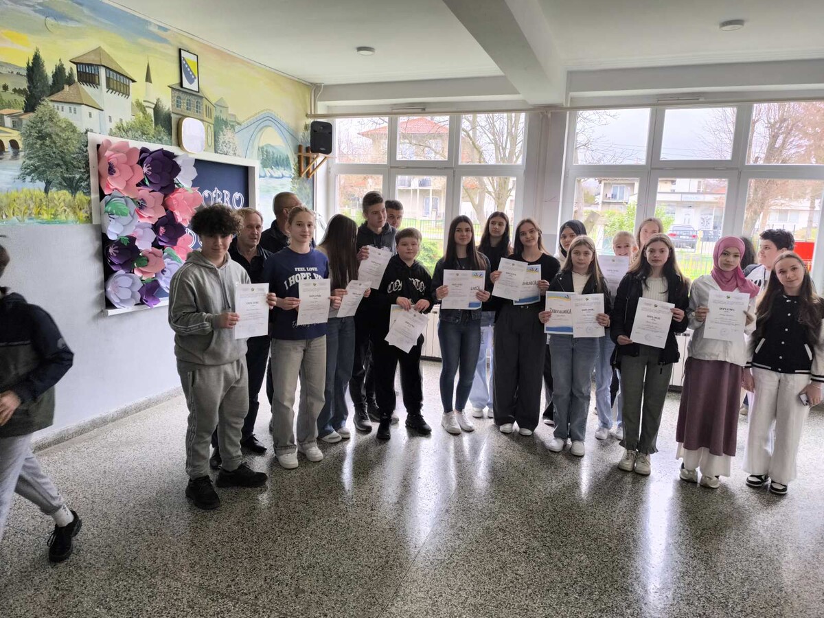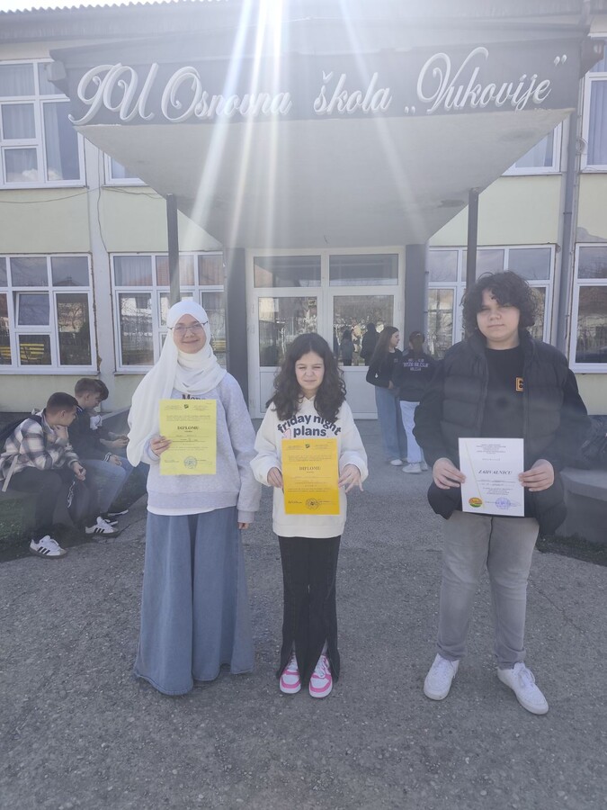 Čestitamo našim učenicima: Kenanu, Zerini, Eldaru, Amaru i Lejli i njihovom mentoru Halilović Nerminu i želimo im puno uspjeha na kantonalnom takmičenju.