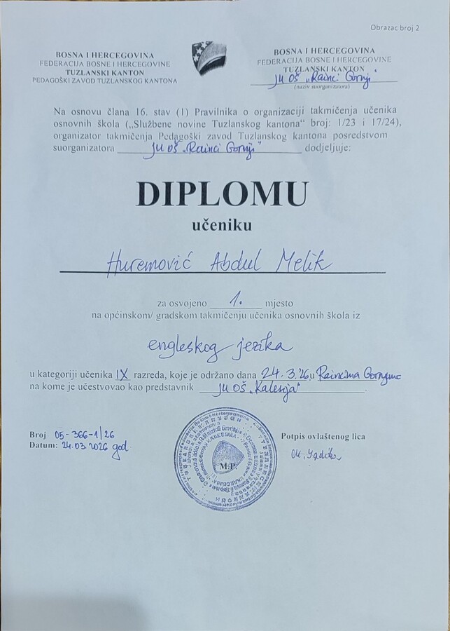 1. Suljkanović Almedina (OŠ “Rainci Gornji”)